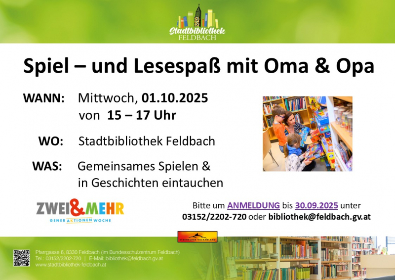 Pfarrgasse 6, 8330 Feldbach - Telefon: 03152/2202-720 - bibliothek@feldbach.gv.at